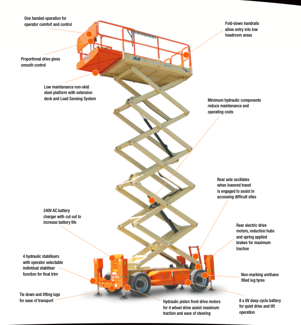 Thuận tiện trong các công tác thi công trên cao với tầm làm việc lớn, hoạt động êm ái, không có khí thải.