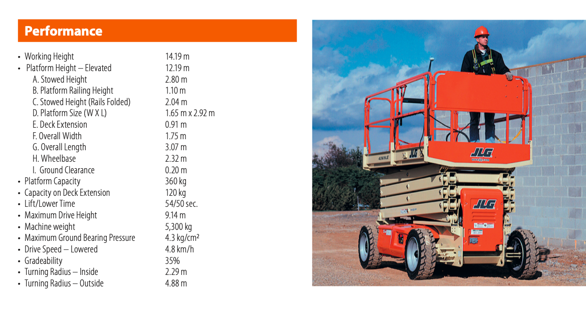 1, Thông số kỹ thuật xe nâng người 6m sàn 8m làm việc JLG 1930 ES